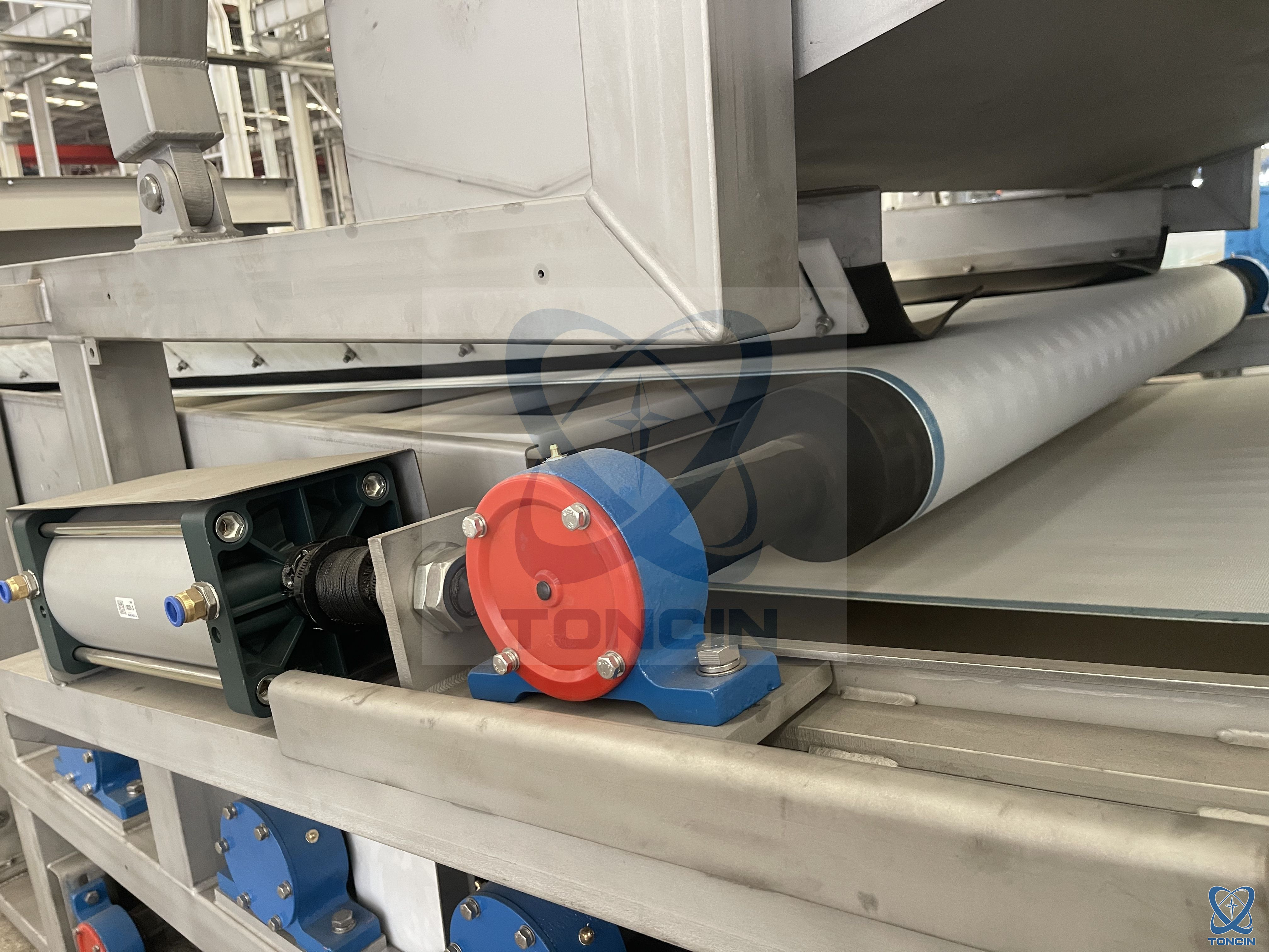 Toncin مكبس الترشيح الحزامي عبارة عن جهاز عالي الكفاءة لفصل المواد الصلبة والسائلة استنادًا إلى مبادئ الترشيح التلامسي للتلبد الكيميائي والبثق الميكانيكي. إنه يتميز بتدفق عملية بسيط، أتمتة عالية، تشغيل مستمر، تحكم مريح، ومعلمات عمل قابلة للتعديل. عندما يتم استخدامه مع مثخن الجاذبية، فإنه يمكن أن يلغي الحاجة إلى خزان تركيز المواد، وبالتالي توفير تكاليف البناء إلى حد ما. ونتيجة لذلك، فإنه يكتسب تطبيقًا واسع النطاق بشكل متزايد في مختلف الصناعات.